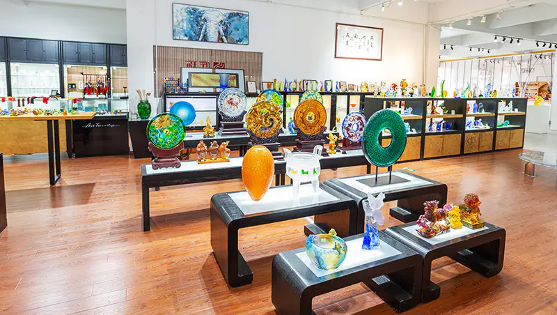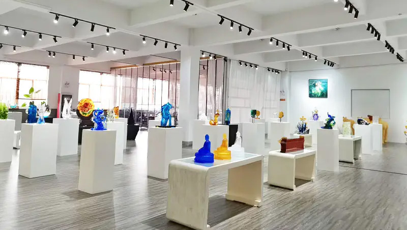 Glaskunstværkerne har gradvist udviklet sig fra traditionelle håndværksgaver til at omfatte dekorative møbler, buddhistisk kultur, krystalservice og moderigtige smykker. Virksomhedens produktionsbase er beliggende i den smukke og velstående vandby Jinxi i Kunshan, Jiangsu-provinsen. Det har et forsknings- og udviklingsrum til glasproduktion, der strækker sig over 35.000 kvadratmeter. Anlægget er udstyret med uafhængige designkapaciteter, lermodelleringsteknikker og teknologiske forsknings- og udviklingsressourcer, der demonstrerer modne færdigheder i både produktudvikling og fremstillingsprocesser.