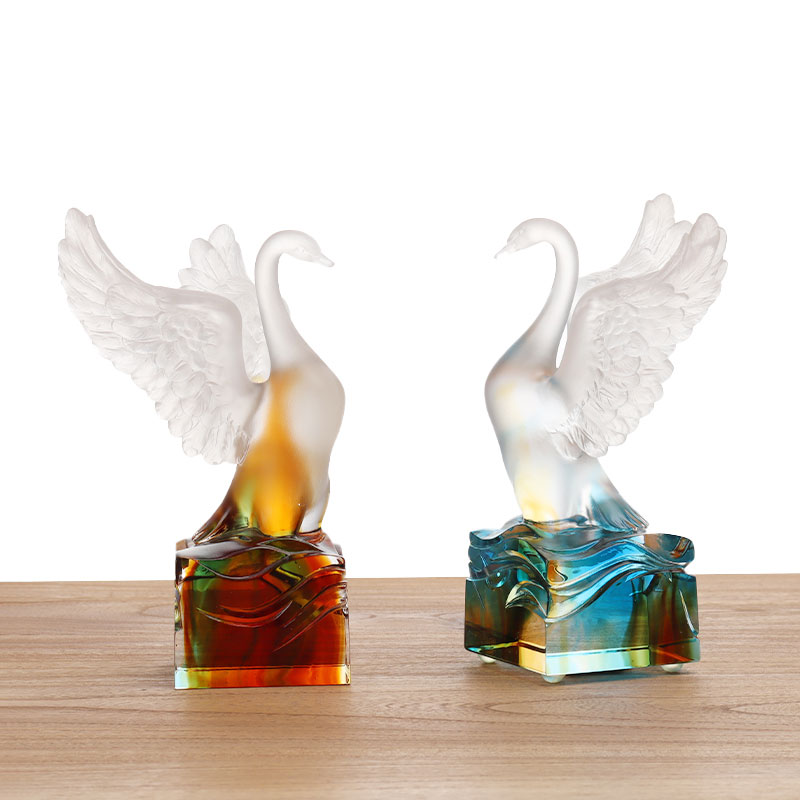 Samlet set er denne glassvane ikke kun en visuel nydelse, men også en ønskværdig kombination af håndværk og kunst. Det symboliserer elegance og adel. Uanset om det er placeret derhjemme som en dekoration eller givet som en gave til andre, kan det formidle en unik kunstnerisk charme og smag.