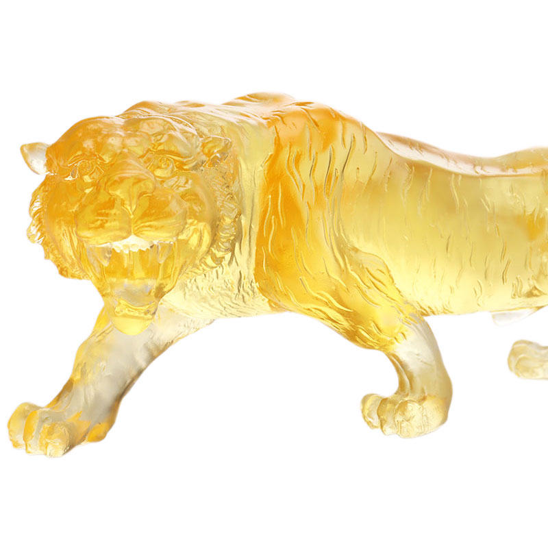 Som et gammelt og mystisk materiale har farvet glasur karakteristika af krystalklarhed og farverige farver. Dette sæt ornamenter demonstrerer beviseligt disse fordele ved farvet glasur. Tigeren er majestætisk, og hver muskellinje er portrætteret i detaljer. Dens kropsholdning er klar til at kaste sig over sit bytte i det næste sekund og viser dens kongelige opførsel. Billedet af dragen er snoet, og detaljerne, såsom dragehår og drageskæl, er naturtro, som om den flyver i skyerne, fuld af mystisk atmosfære.
