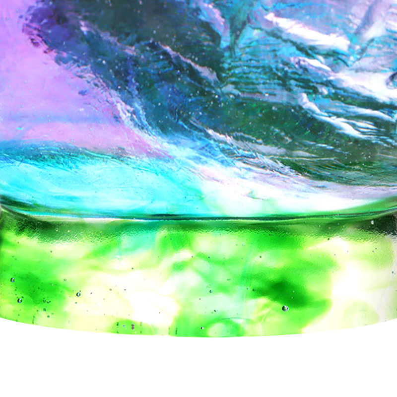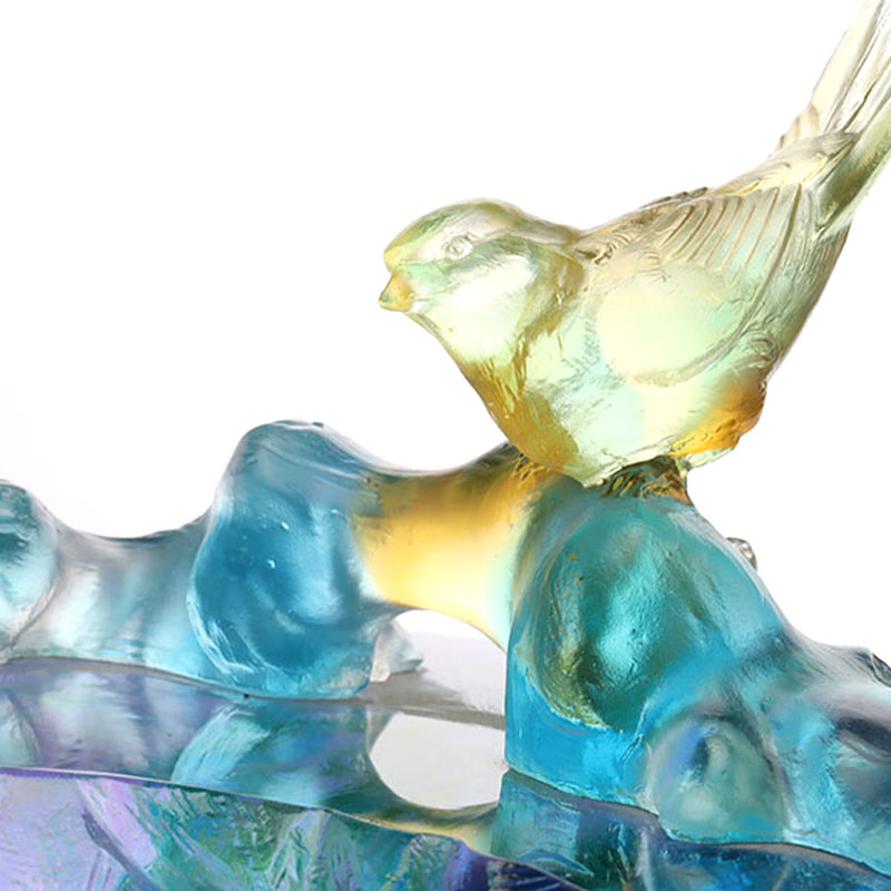 Faktisk er det helt normalt, at glaskunstværker indeholder bobler. Dette skyldes vores brug af støbeteknikken med tabt voks, som naturligvis resulterer i tilstedeværelsen af ​​bobler i stykkerne. Den måde, lyset brydes gennem disse interne bobler, viser glasmaterialets unikke charme. Det illustrerer smukt, at glas virkelig tjener som et kar for lys.