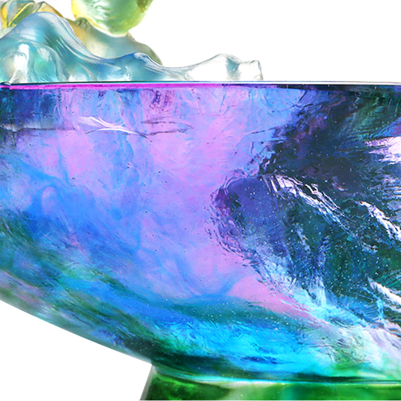 Denne glasfrugttallerken er som et fint kunstværk. Dets gennemsigtige materiale afspejler den drømmende glans af blåt og grønt under lyset, som om det kombinerer det mystiske hav med den frodige skov. Den dynamiske tekstur på tallerkenen er som et maleri tegnet af naturen, delikat og fuld af vitalitet.