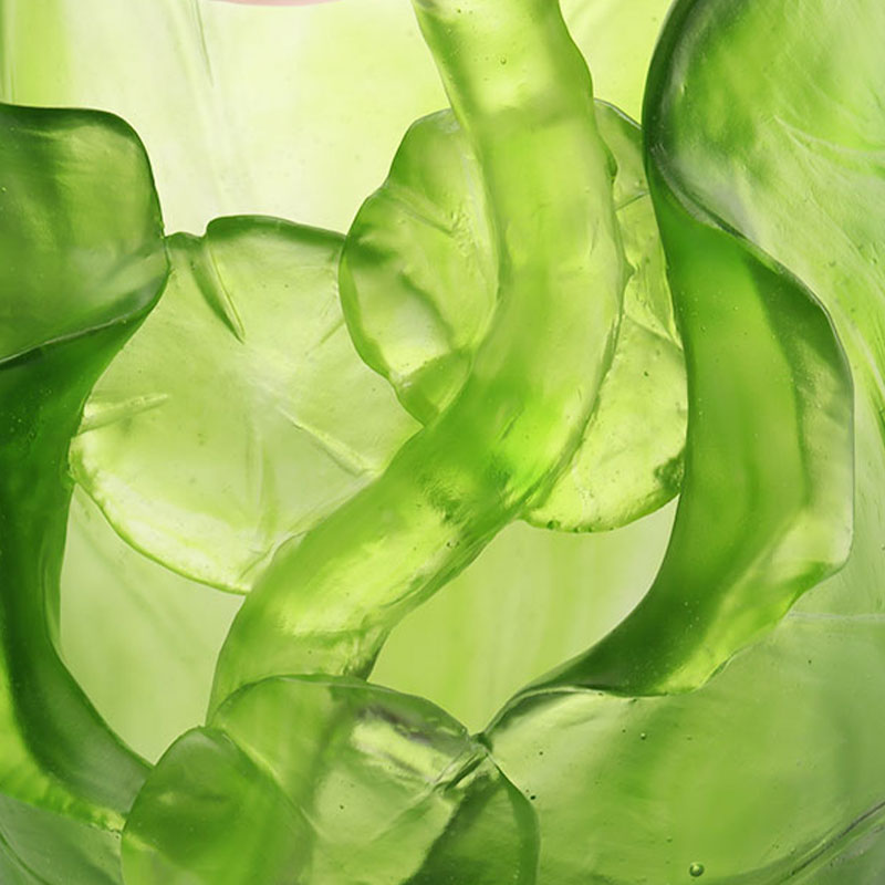 Hver vase har en unik form og navn, såsom "Lotus i solen", "Announcement of the Dawn" og "Hehe Ruyi", som ikke kun er smuk, men også poetisk. De symboliserer renhed, skønhed, vedholdenhed og ukuelig ånd, som ikke kun bringer visuel nydelse, men også formidler en positiv åndelig kraft. Dette design, der ønskeligt kombinerer naturens skønhed med glashåndværket, er virkelig fantastisk.